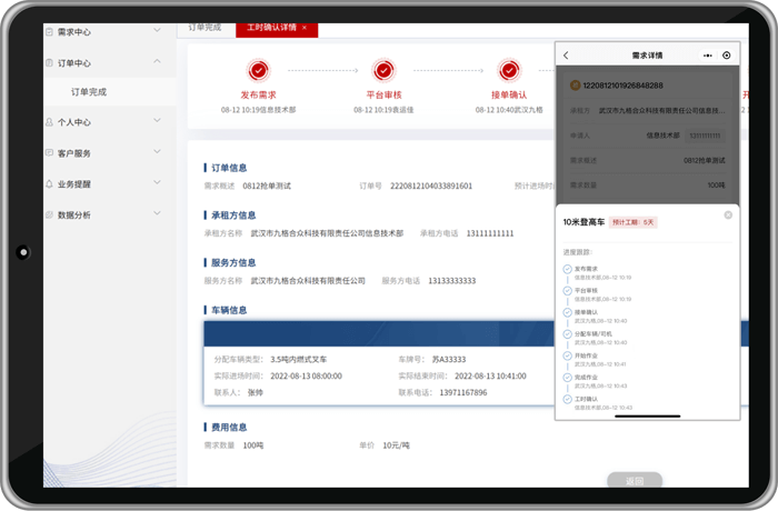 1.全过程可视化跟踪,移动端和电脑端并行运作