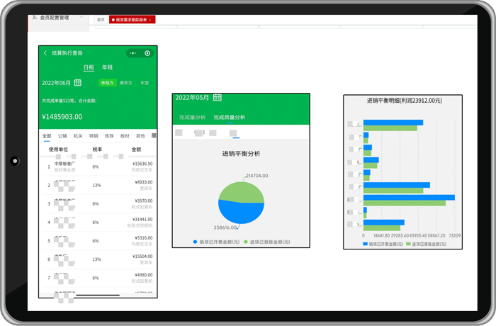 系统自动生成结算报表、进销平衡、项目利润数据,降低企业时间成本。